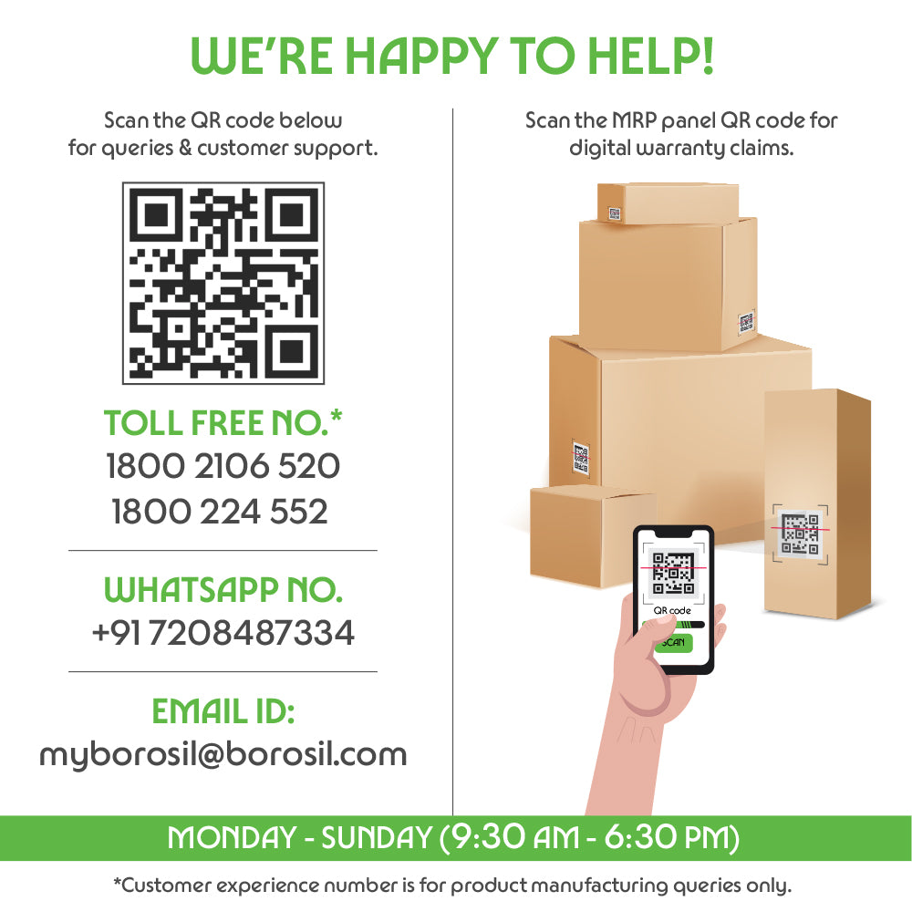 - Borosil Limited, 1101 Crescenzo, G-Block, Bandra Kurla Complex, Bandra East, Mumbai - 400051, Maharashtra; 1-800-22-4552 & 1-800-21-06520