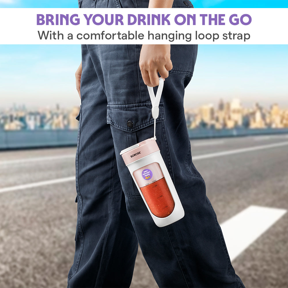 Make healthy living easier with the NutriSip Pink Portable Blender. Compact yet powerful with a 40W low-noise DC motor, it is perfect for blending soft fruits, mixing protein powders, or making refreshing smoothies and shakes on the go. Designed with a turbo 6-blade stainless steel system and 300ml unbreakable polycarbonate jar, this blender delivers smooth results every time. With built-in safety features like a thermostat for motor protection and a jar-sensing switch, it ensures worry-free use. Dishwasher-safe jars and easy twist-to-blend operation make it a convenient everyday companion.