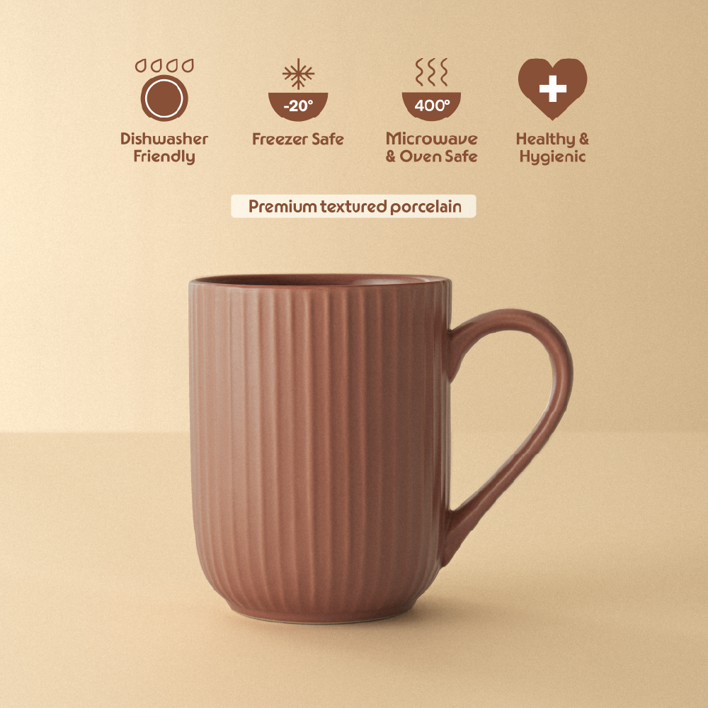 Elegant with a touch of expression, the Porcelia Flute mugs bring subtle artistry into your everyday. Each mug features delicate vertical flute lines running along the outer surface, adding texture, movement, and quiet charm to every sip.