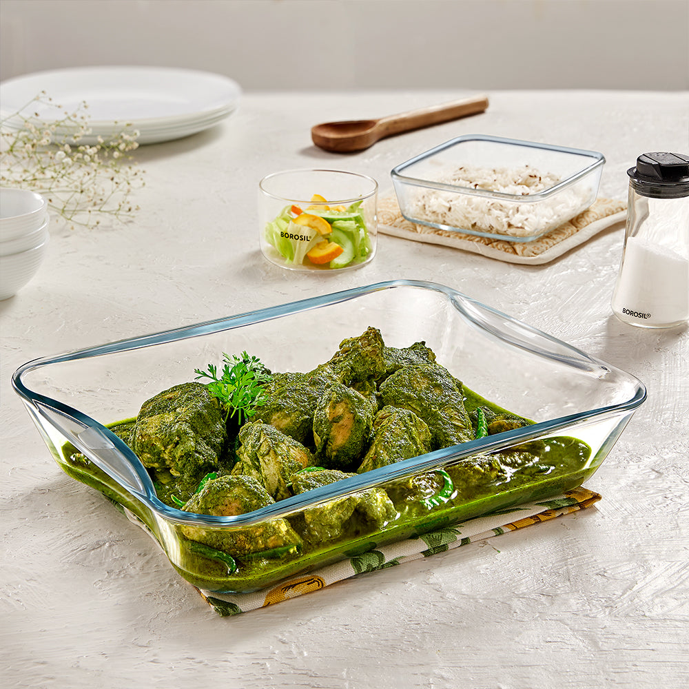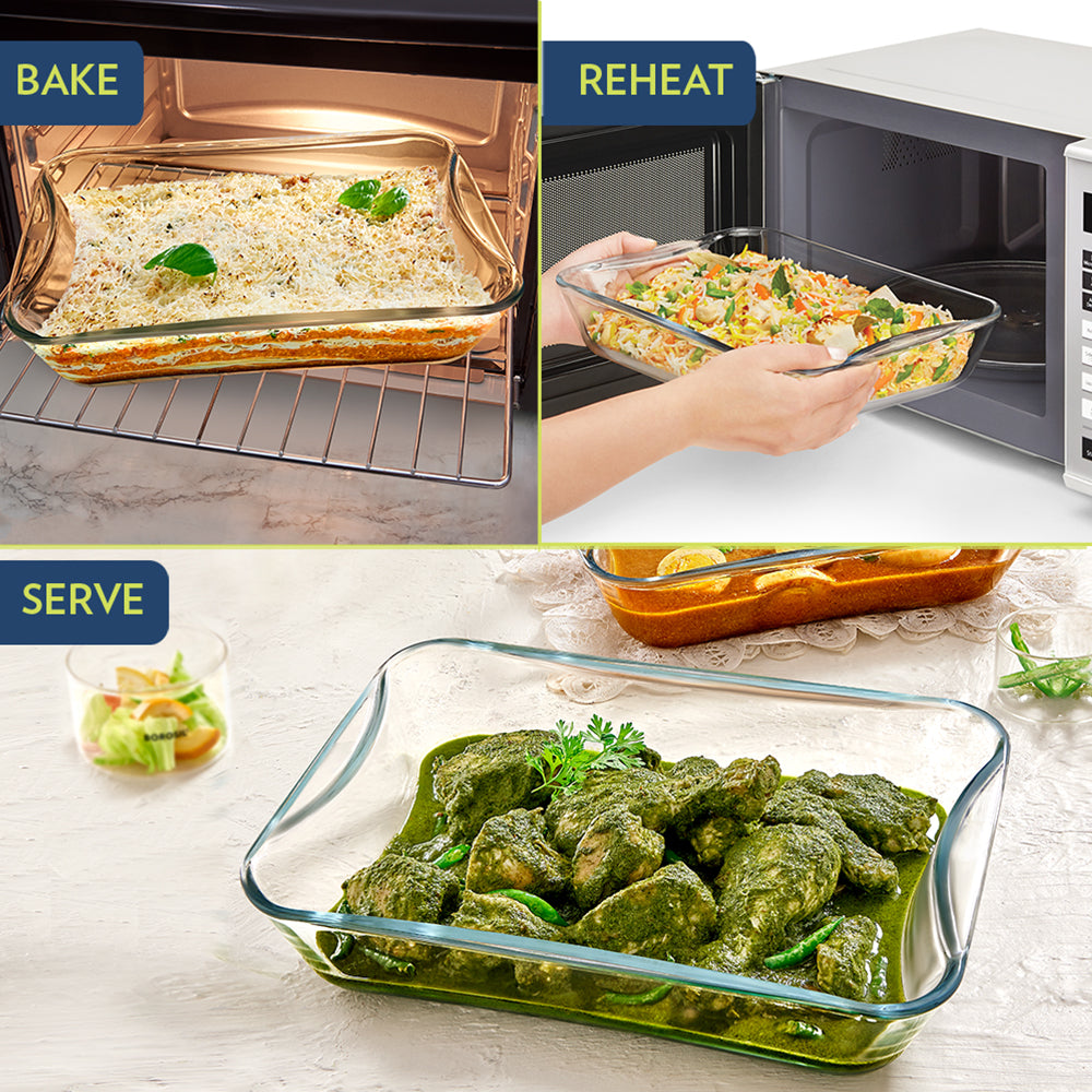 The EasyGrip Rectangular Dish is your go to when serving large portions of food such as dahi bhalla, jalebi, rasmalai and much more. This microwave and oven safe dish is your perfect serving partner for parties and get togethers - the easygrip handles make it super convenient to carry, and you can bake heat and serve in it while looking great at the same time!