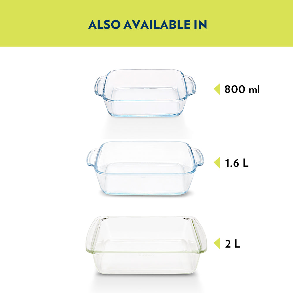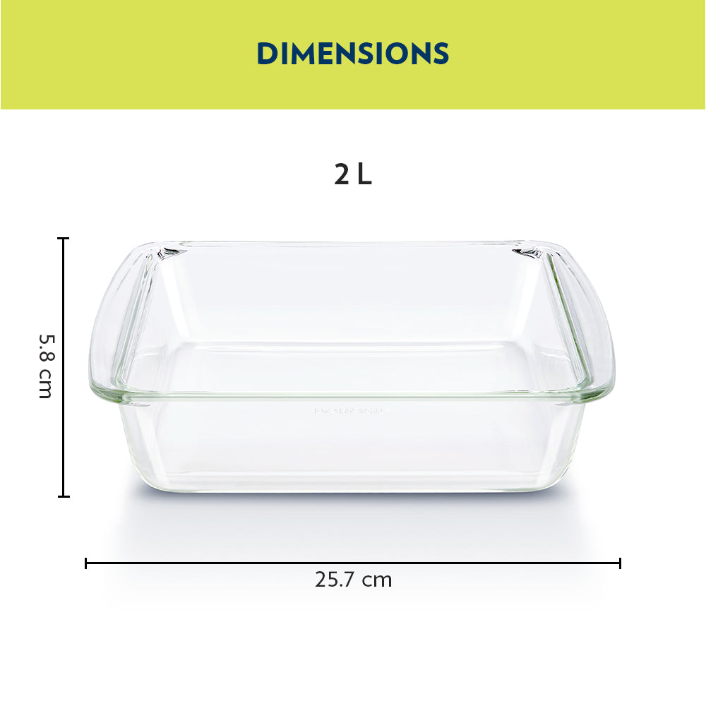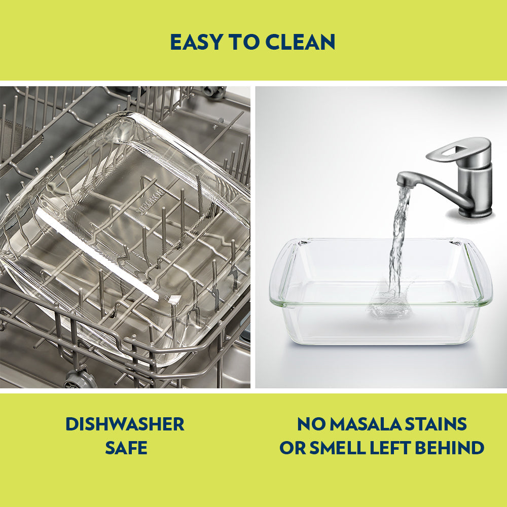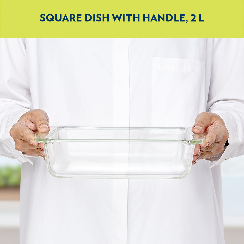 Borosil's Square Dish with handles makes it easy for you to cook and reheat your food in the microwave or oven, as the handle will not get very hot. They are ideal for baking cakes, souffles, au gratins, pulaos, pastas and halwas, can even be used to make dhoklas, or simply for serving your favourite sabzis. The transparent glass allows you to see how the dish is progressing and makes the food look even more appetizing when served.