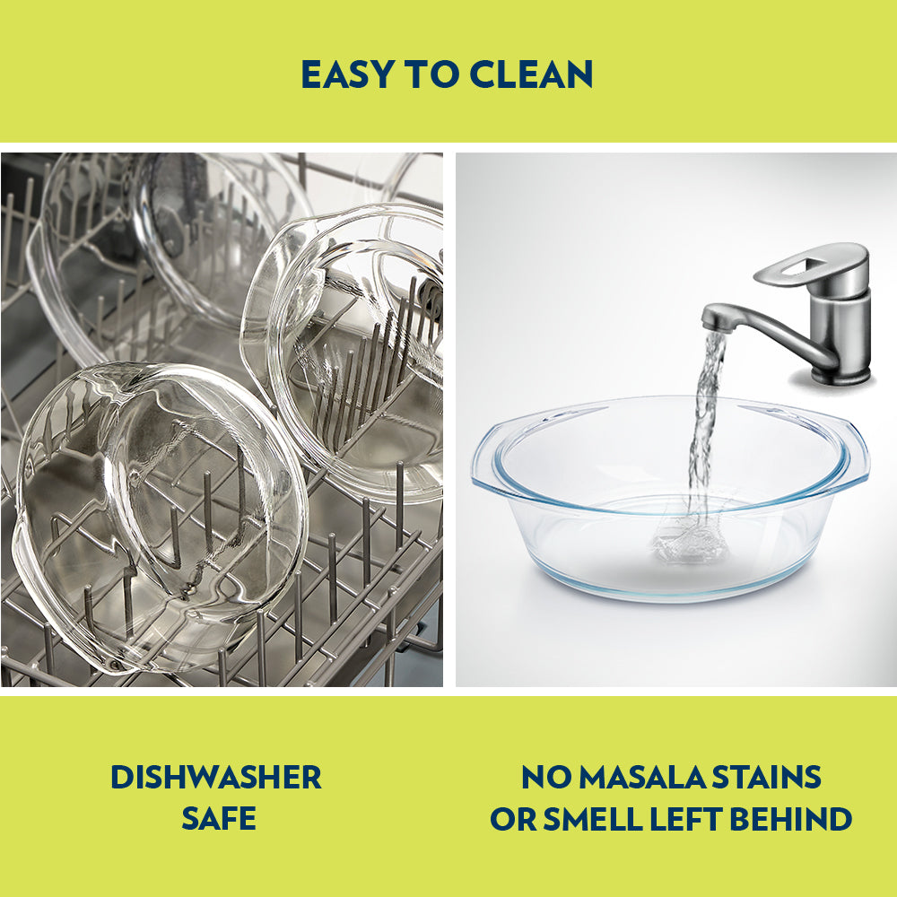 - Can be safely used in the microwave, oven, fridge, freezer and dishwasher