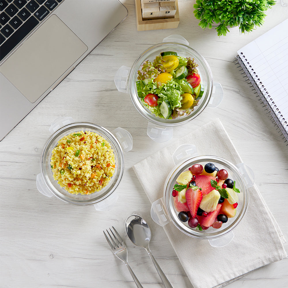 Smile Glass Lunch Box, Round x 3 (Tall), Set of 3, 400ml