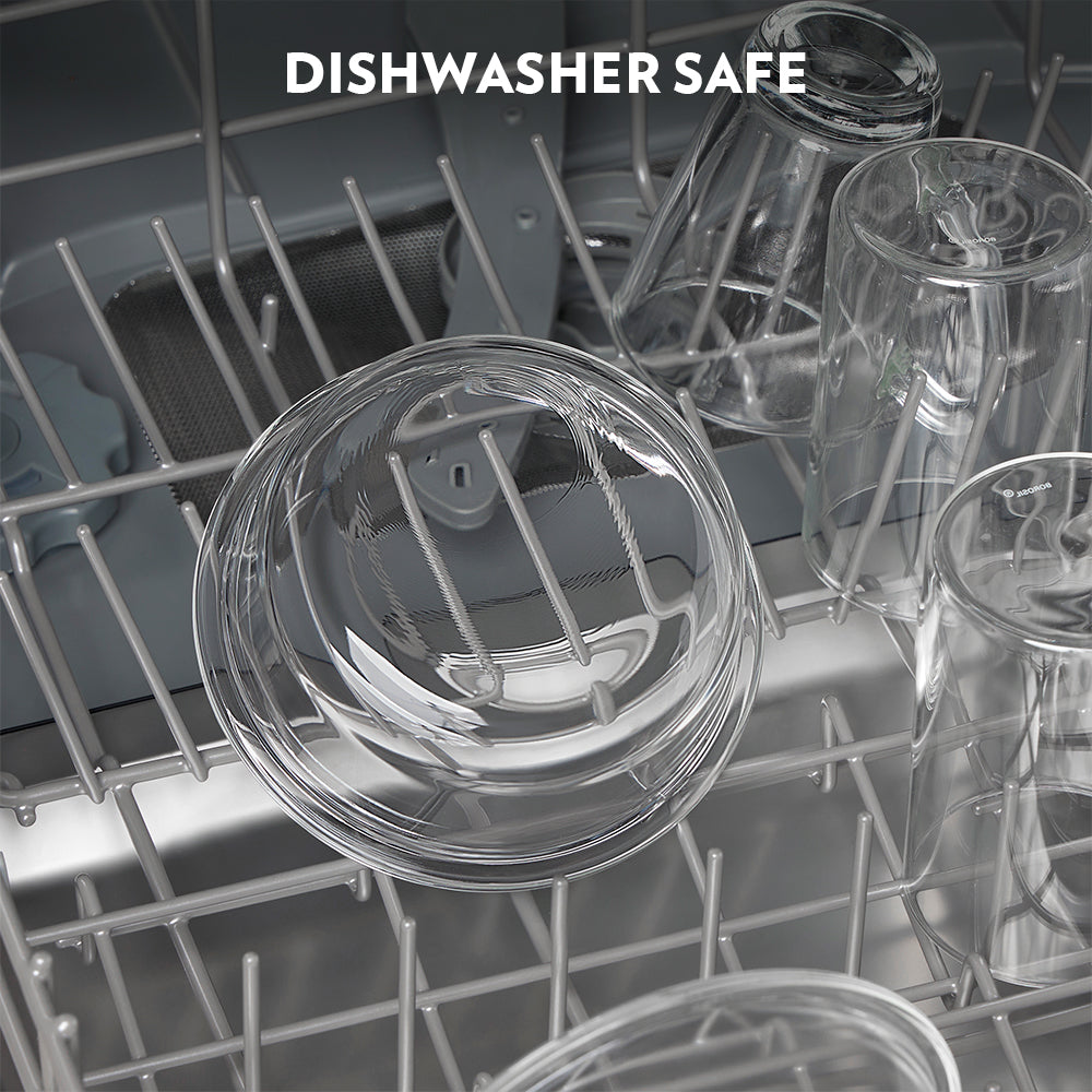 - Retains perfect clarity. Unlike regular soda lime glass, will not turn cloudy with repeated usage