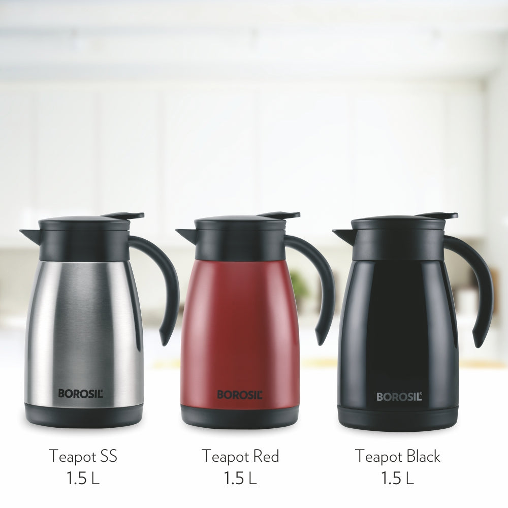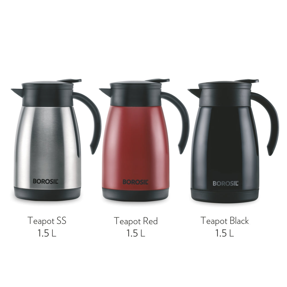 Our range of Tea Pot flasks are perfect to keep by your bedside or to keep your tea or coffee in to drink at your leisure. The copper coating and vacuum insulation keeps your drink at the right temperature even in an airconditioned environment, so that whenever you pour your drink, It is just at the temperature you like it. The large mouth opening makes filling and cleaning easy. The outer body stays cool even when filled with hot liquids, and is condensation free when filled with cold beverages. Available in a classic brushed steel finish and a contemporary matte red and black, there is a Tea Pot to suit all fancies!